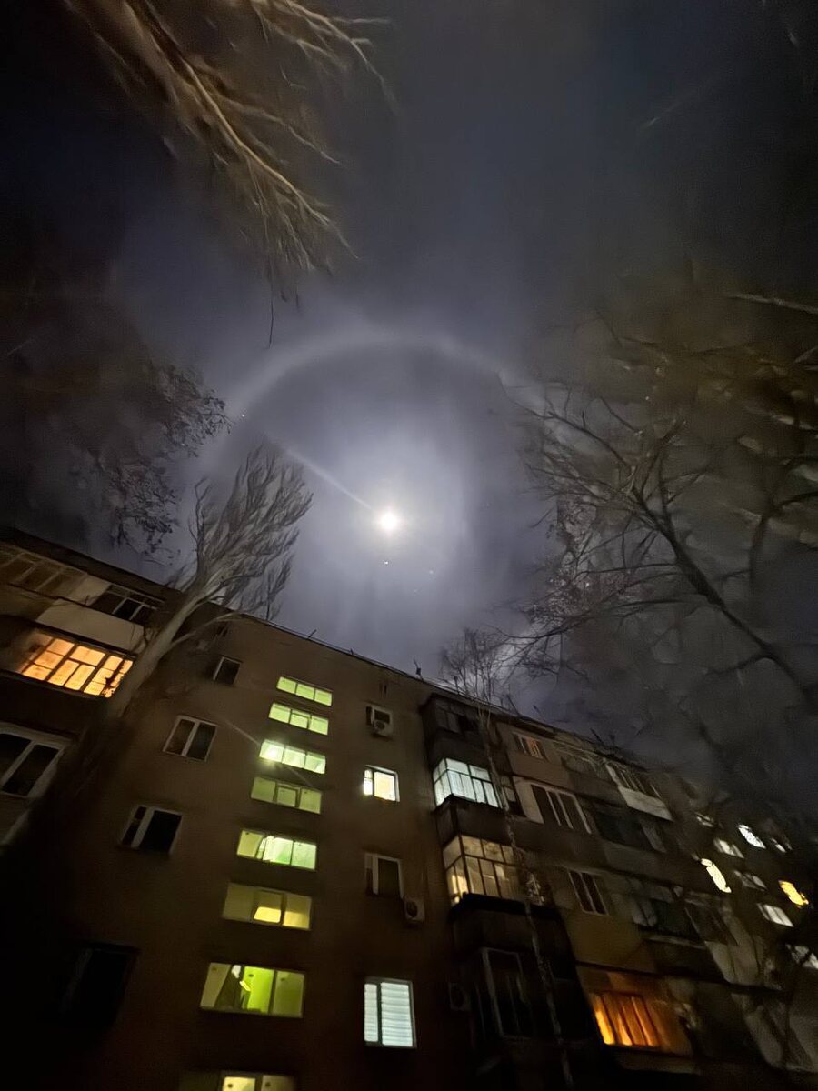 Специалисты объяснили, что оно появляется из-за попадания света на летающие кристаллы льда в верхних слоях атмосферы. Ночью это явление представляет собой два-три овальных кольца вокруг Луны, что и заметили мелитопольцы.