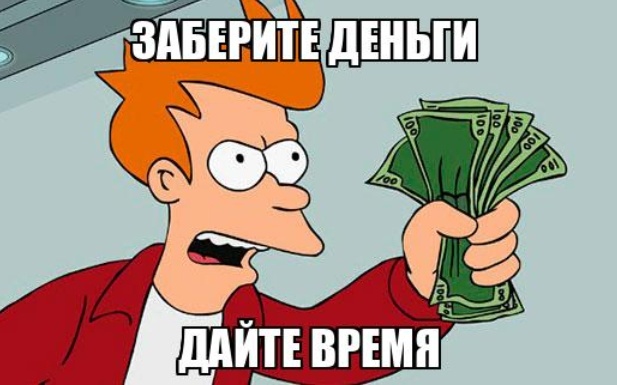 И вот, собственно, главная мысль этого сочинения, пресловутое «что хотел сказать автор». Время стало дороже денег, потому что деньги, как бы это помягче выразиться, перестали быть деньгами. Труд неприлично дёшев. И значит, время лучше тратить не на него. Ну то есть совсем без труда никак, и не потому что он сделал из обезьяны человека (это, знаете ли, очень спорное утверждение), а потому что рыба из пруда по-прежнему ловится не без усилий, а есть что-то надо.