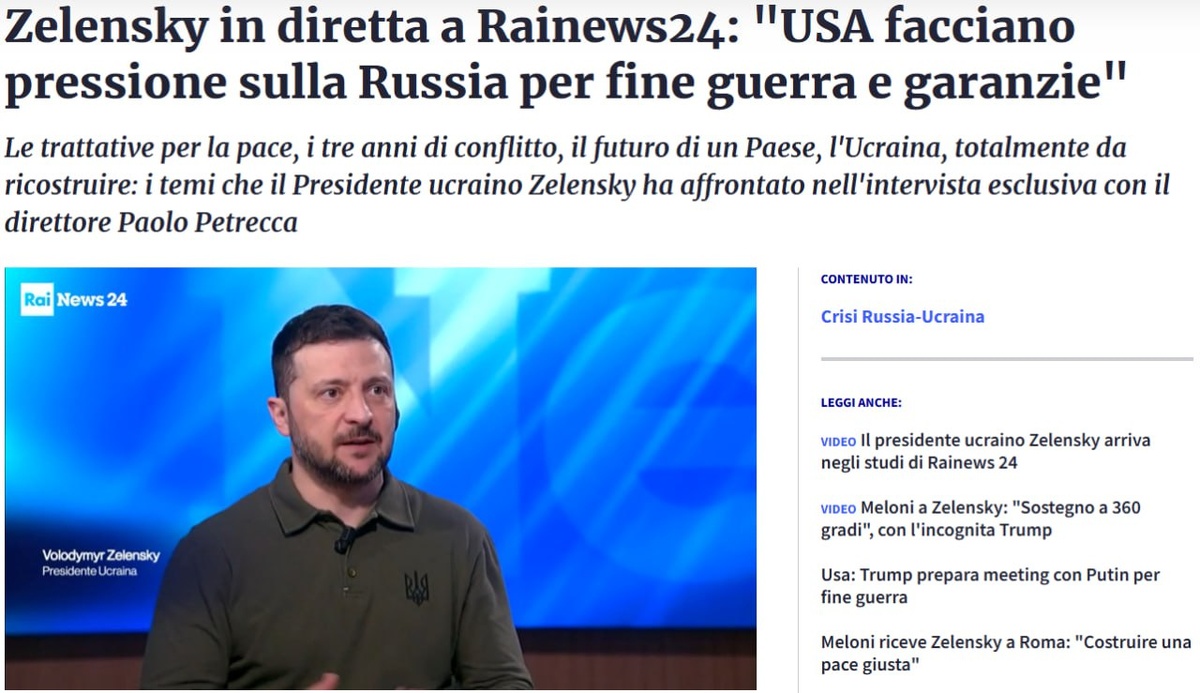 Владимир Зеленский дал интервью итальянскому телеканалу RAI News 24. На этот раз он не матерился в эфире, что уже хорошо. «Наша цель состоит в том, чтобы получить гарантии безопасности в этом году и закончить войну в этом году. Мы сделаем для этого все», – сказал Зеленский. Он еще раз повторил, что Украине важно получить серьезных гарантий безопасности от США и стран Запада перед началом каких-либо переговоров с РФ, указав на необходимость давления со стороны Вашингтона на Москву. Не удержался Зеленский и от очередной порции оскорблений и шпилек в адрес Владимира Путина и РФ. «Уничтожить Украину полностью – это мечта Путина. Не нужно верить в другие сказки. Нам нужно, чтобы Америка давила на Россию и дала такие гарантии безопасности, чтобы ни Путин, ни кто-то после него не пришел с войной в Украину», – заявил он. «Проблема в Путине, что если он не поймет, и если ему не будет больно и дорого, то он будет потирать руки и готовиться для новой войны. И точно придет в Европу.Он хочет прийти