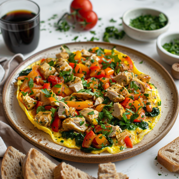 Омлет — это блюдо, которое стало классикой завтрака. Но чтобы сделать его не только вкусным, но и полезным, попробуйте добавить сочное мясо индейки и свежие овощи. Этот рецепт удивит вас богатым вкусом и насыщенностью полезными веществами. Готовый омлет разрежьте на порционные куски и подавайте с рубленой свежей зеленью. Блюдо отлично сочетается с цельнозерновым хлебом или ломтиком авокадо. Этот омлет идеально подходит для тех, кто хочет начать утро с легкого и питательного завтрака. Добавьте этот рецепт в своё спортивное меню и получайте максимум энергии на целый день!