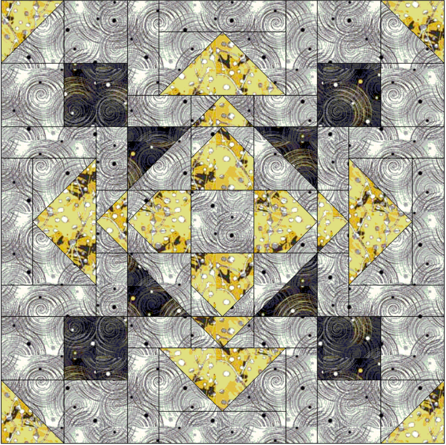 Используя изображение блок, разместите секции блока. Сшейте секции блока в ряды. Сшейте ряды вместе, чтобы завершить блок.