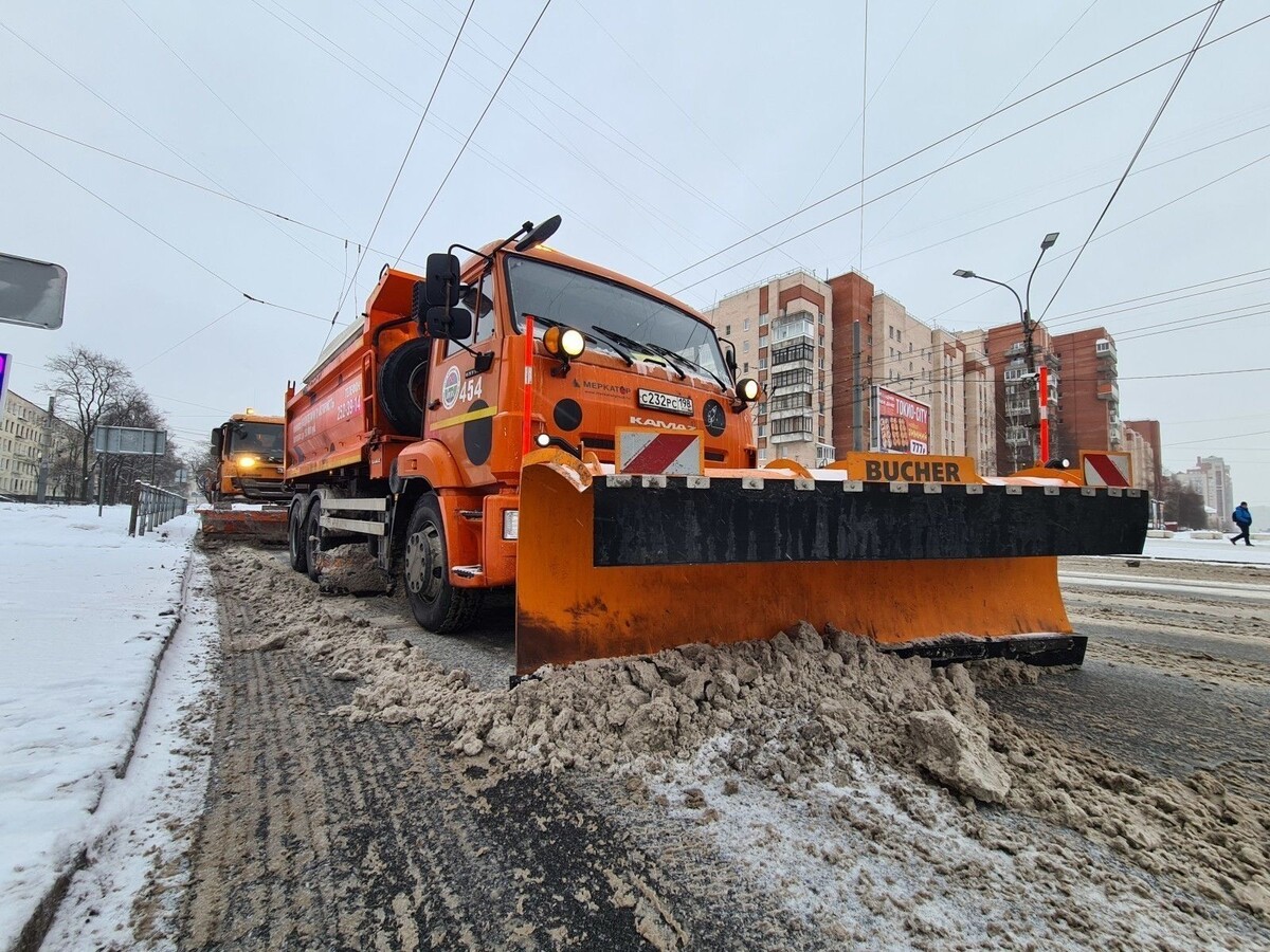 Из-за сильного снегопада коммунальные службы Петербурга работают круглосуточно, сообщает телеграм-канал «Комфортный Петербург».