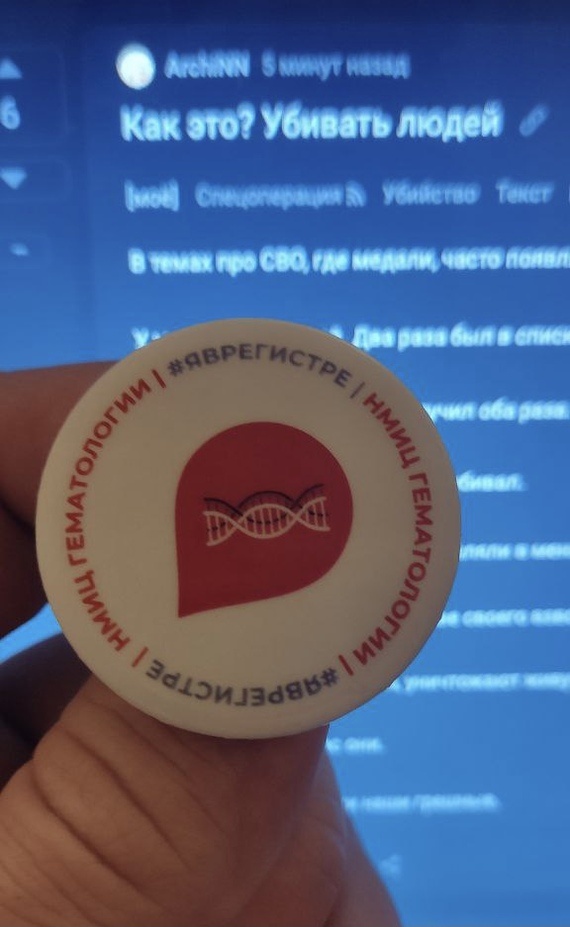 И не от одной награды нет столько удовлетворения, сколько от этого дешманского значка, который я запостил выше (и который лежит в сумке во внутреннем кармане). Столько чувства нужности, правильности выбора, морального удовлетворения - ничто не приносило и не приносит. Надеюсь, что мне выпадет честь попытаться помочь кому-то, став донором костного мозга. Пока что только кровь сдаю 5 раз в год и стал в регистр год назад. Я не убиваю, я спасаю. Во всяком случае пытаюсь. Становитесь донорами крови и записывайтесь в регистр доноров костного мозга! Это не больно, это спасает жизни! Всем мира и добра!