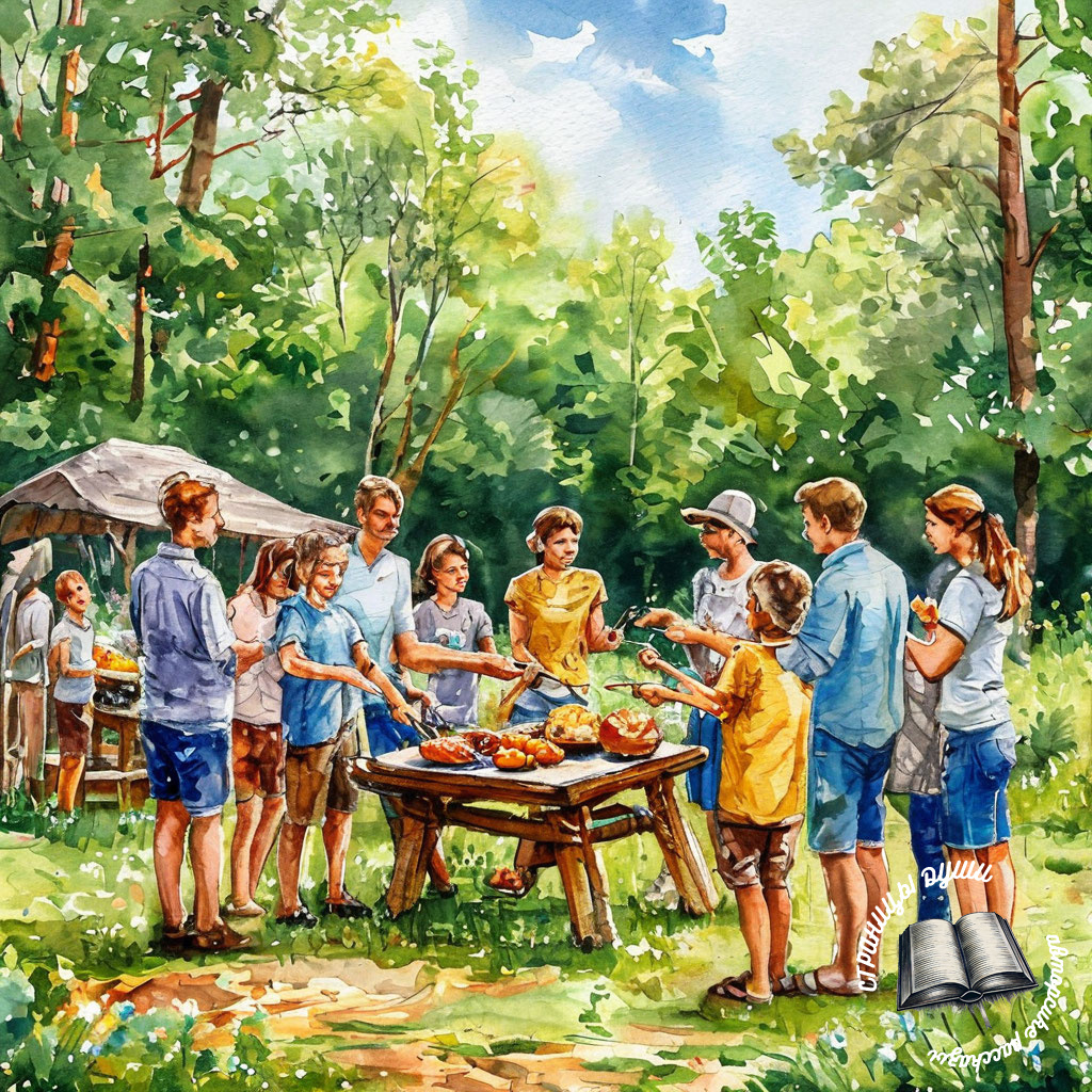 Спустя полчаса приехали остальные родственники, и суета на поляне разгорелась с новой силой. Дети бегали вокруг машин, кто-то доставал продукты, кто-то ставил стулья, а Сергей старательно разжигал костёр.