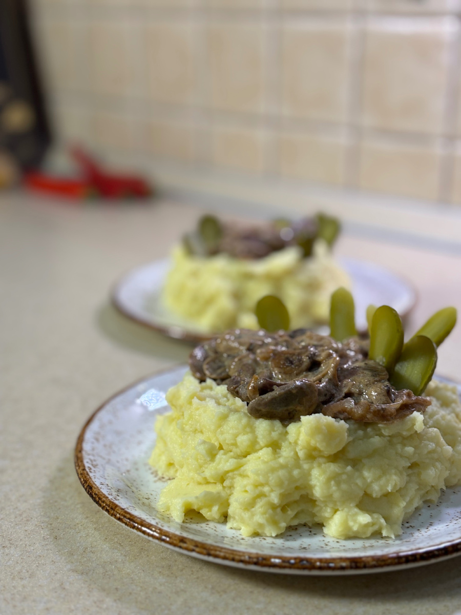 Подпишись и читай пошаговый рецепт Подготовьте ингредиенты: ✅мякоть говядины 250 гр ✅шампиньоны свежие 300 гр ✅лук 1 шт (200 гр) ✅сливки 150 мл ✅свеже молотый перец и соль по вкусу ✅подсолнечное масло 2 столовые ложки ✅корнишоны по желанию для украшения ✅картофельное пюре или гречневая каша крупа на гарнир Шаг 1 На сильном огне разогрейте в сковороде подсолнечное масло Шаг 2 Нарежьте говядину соломкой и обжарьте до золотистости Шаг 3 Нарежьте лук полукольцами и добавьте к поджаренной до золотистости говядине, обжаривайте 5-7 минут до мягкости лука Шаг 4 Тонко нарежьте шампиньоны, отправьте их в сковороду к мясу и луку, посолите и перемешайте Шаг 5 Обжаривайте грибы 5 минут и после добавьте сливки, добавьте перец и соль по вкусу, доведите до кипения, убавьте огонь и тушите 10-15 минут ❗️чтобы соуса получилось больше, можно добавить больше сливок или воды Шаг 6 Добавьте бефстроганов к гарниру, по желанию украсьте корнишонами #еда #рецепты #foodблогер #бефстроганов