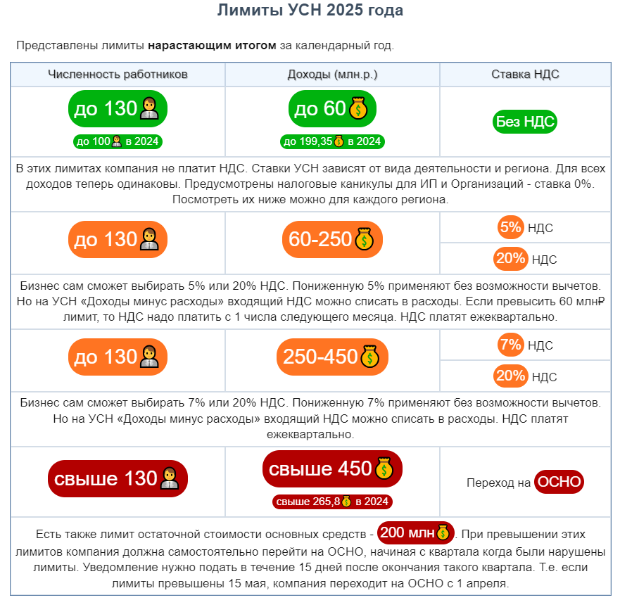 Многие испугались что с 2025 года на УСН вводят НДС. Есть у него разные ставки. НО... спешу обрадовать тех у кого как и у меня доходы скромнее 60 млн в год. Изменений никаких! Да взносы ИП подняли с 49 500 до 53 658 прирост 8,4%, но их каждый год поднимают как и всё. Доход, до которого налог УСН составляет 0 рублей. 825 000₽ в год / 68 750 ₽ в мес. Кстати бесплатно вести весь налоговый учет на УСН (с вычетами) можно в Excel. Для этого я разработал большой цветной файл который сам подсвечивает доход в зависимости от квартала и считает все налоги и платежи - https://ipipip.ru/usn.xlsx