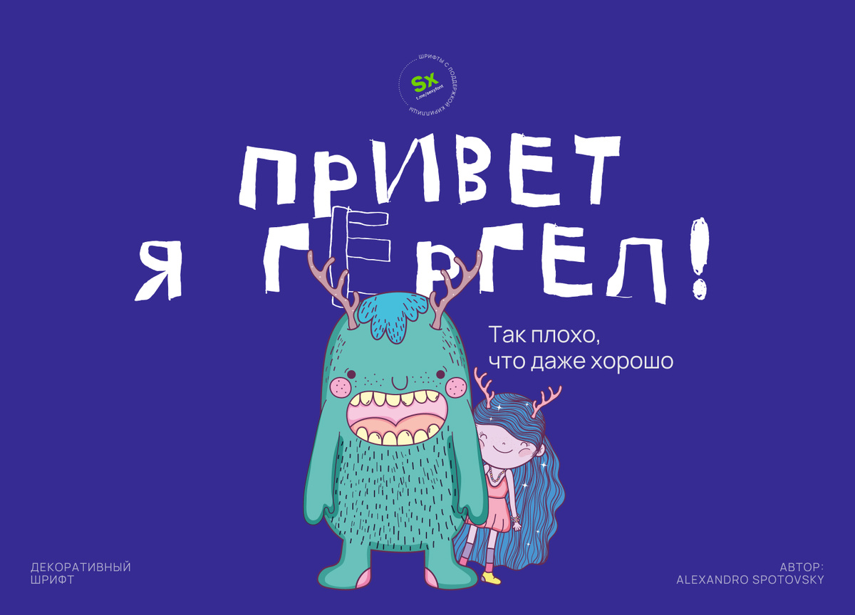 Звание самого кривого шрифта года заслуженно вручается GERGEL! Я бы сказал, что все так плохо, что даже хорошо!) Автор: Alexandro Spotovsky Бесплатно для личного и коммерции. Скачать шрифт GERGEL можно в нашем телеграм-канале с кириллицей Скачать шрифт бесплатно