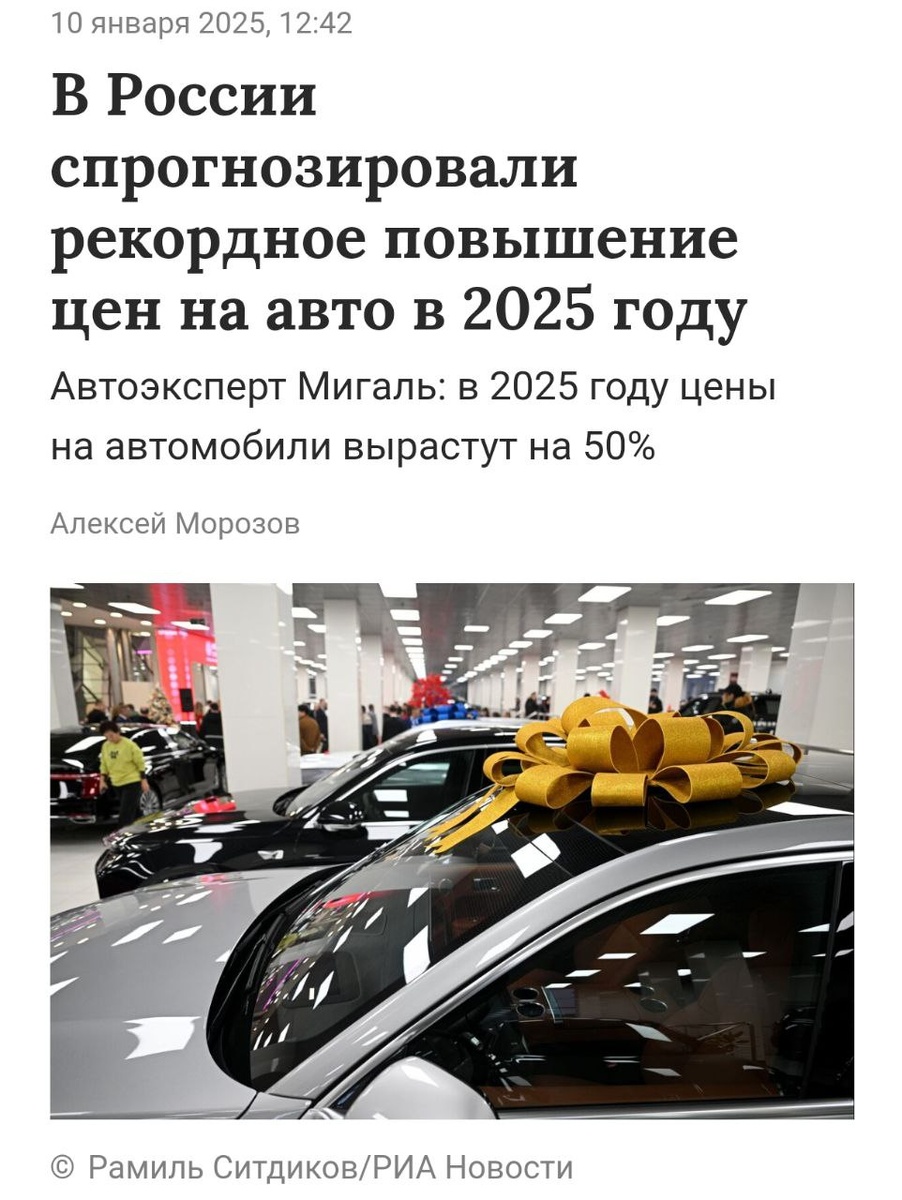 Цены на машины в России ВЗЛЕТЯТ на рекордные 50% в 2025 году, — вице-президент российских автодорог Денис Мигаль. Хуже всего, что подорожают не только новые тачки, но и подержанные авто — основной рост цен стоит ожидать во второй половине года. Эксперт считает, что позволить себе новую машину смогут только самые богатые россияне, остальные будут долго ремонтировать своё авто. Присматриваемся к автобусу.