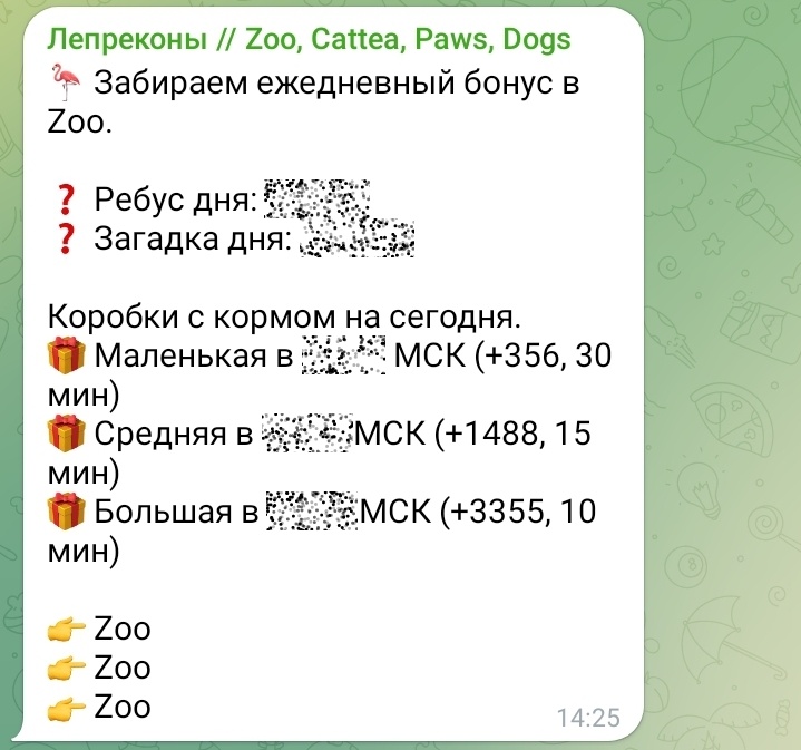 Посмотреть ответы и время коробок Zoo можно в канале. СМОТРЕТЬ СМОТРЕТЬ СМОТРЕТЬ