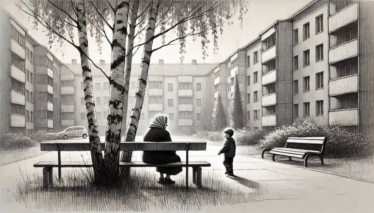 Анна Сергеевна любила утренние часы, когда двор ещё наполовину спал, и только солнце начинало заливать его мягким светом. Она выбрала себе привычное место на лавочке под старой берёзой, где проводила первый час своего дня. Лавочка, крашенная не то голубой, не то серой краской, была в этом дворе с тех пор, как Анна Сергеевна переехала сюда ещё в молодости.