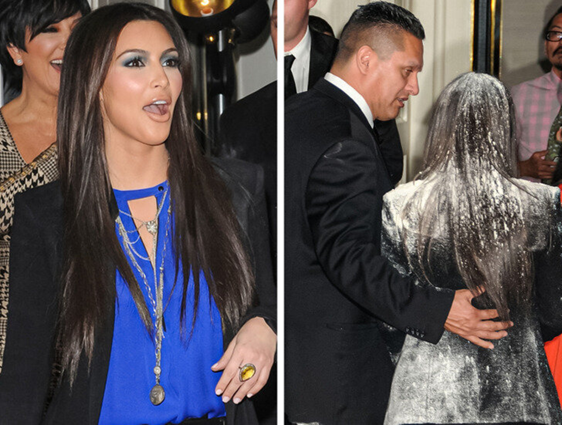 В 2012 году на презентации своего аромата Ким Кардашьян подверглась нападению активиста, который бросил в неё муку. Это событие было заснято множеством камер, мгновенно распространившись в сети. На видеозаписи видно, как мука покрыла ее с ног до головы, испортив внешний вид. Однако реакция Ким заслуживает внимания. Вместо того, чтобы расстроиться и покинуть мероприятие, она быстро отряхнулась, продемонстрировав поразительное самообладание.
