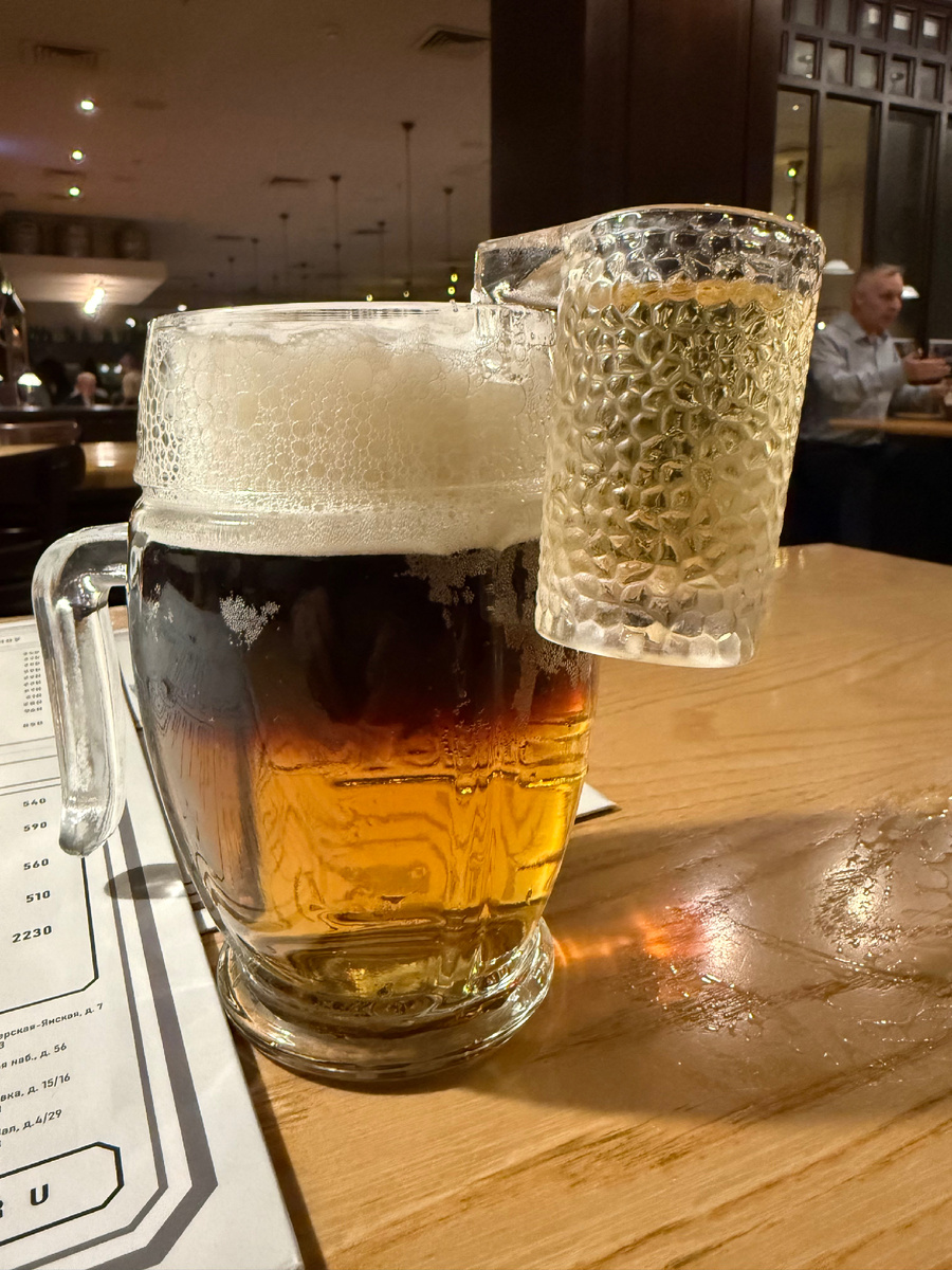 Пиво крафтовое преимущественно, выбор большой. Все пиво льют по 0,4. Немецкий Айгнер хелль стандартно нормальный. Есть еще неплохой выбор крепкого и по мелочи вино и коктейли.