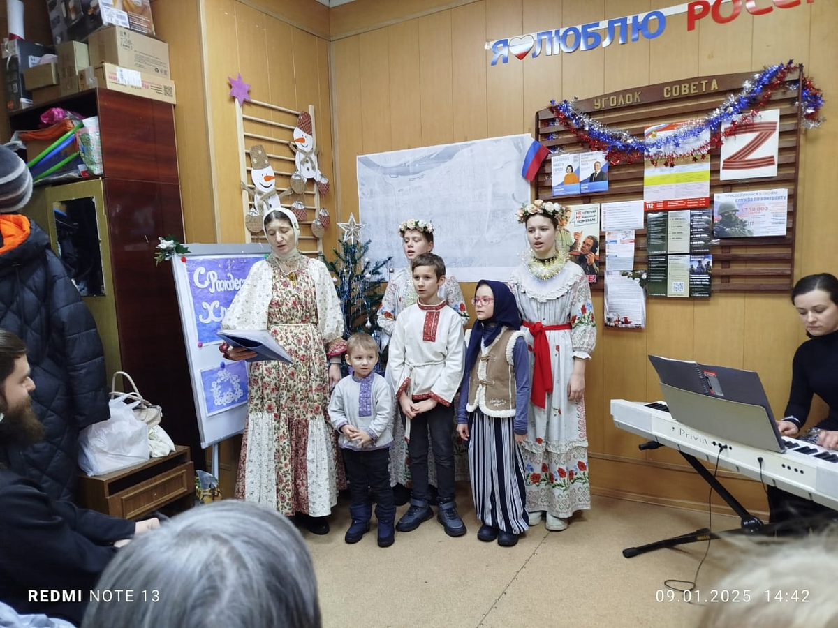 Ребята из воскресной школы храма Святителя Николая г. Новокузнецка подготовили небольшое праздничное выступление и поздравили всех сценкой и Рождественскими песнями.