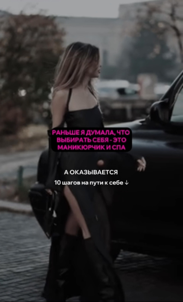А оказывается Вот 10 шагов на пути к себе Пользуйся, Милая🫶🏼 1. Удовлетворяйте базовые потребности Начните с банальных вещей: ешьте, когда голодны; отдыхайте, если устали; утешайте себя, когда вам тяжело. 2. Прислушивайтесь к своим мыслям Постарайтесь лучше осознавать, о чем вы думаете, какие эмоции проживаете, какие чувств. Начните с того, чтобы хотя бы три раза в день спрашивать себя: «Что я сейчас чувствую?» 3. Установите границы Это нормально — говорить людям «нет». Соглашаясь сделать то, чего делать не хочется, вы будете получать один и тот же результат: чувство неудовлетворенности и сожаление о потраченном времени. 4. Находите время для себя Важно дать себе возможность заниматься тем, что вас наполняет и заряжает. Выбирать себя — значит постоянно расставлять приоритеты. 5. Окружите себя людьми, общение с которыми приносит радость Вспомните тех, кто постоянно критикует или осуждает вас, бесконечно жалуется на жизнь или манипулирует вашими чувствами. 6. Позволяйте себе о