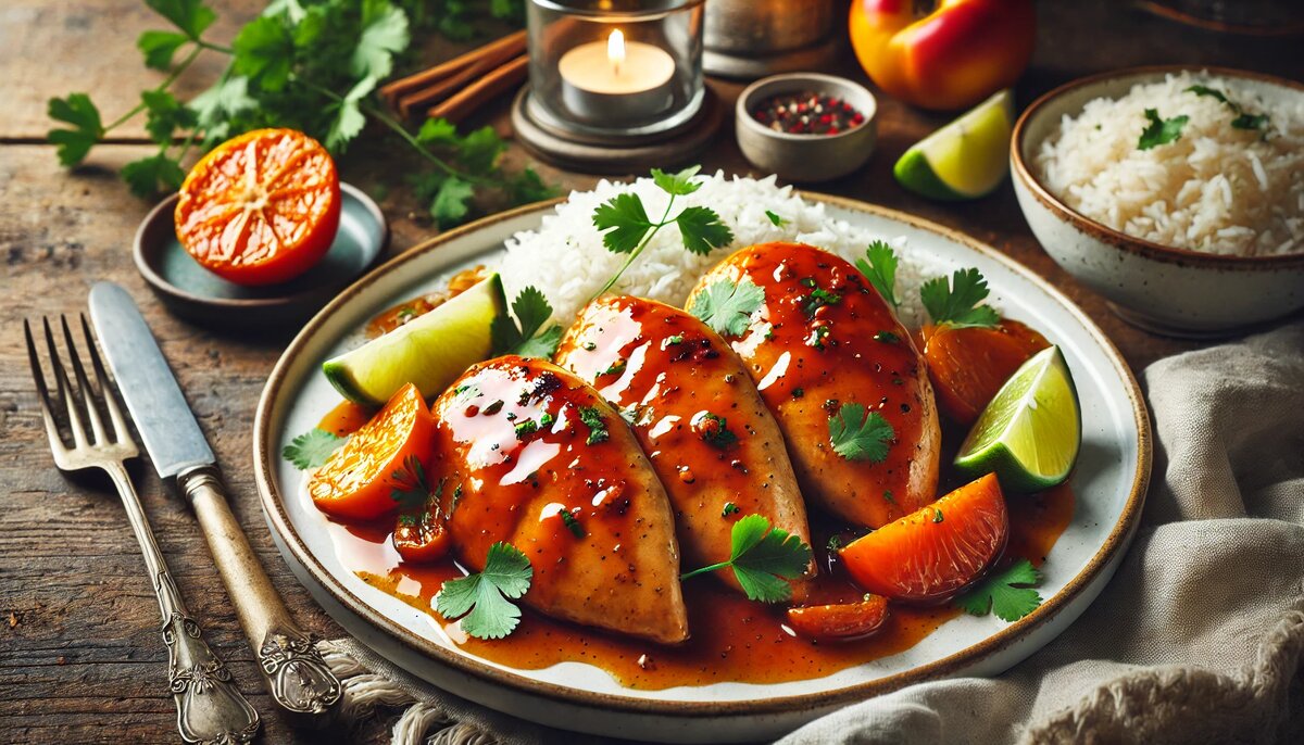 Куриное филе в соусе из хурмы — это кулинарная находка, которая сочетает в себе нежное мясо и насыщенные фруктовые акценты. Хурма, с её естественной сладостью и бархатистой текстурой, становится идеальной основой для соуса, а имбирь и лайм добавляют пикантности и лёгкую кислинку. Это блюдо — яркий пример того, как можно превратить привычное куриное филе в изысканный деликатес, который идеально подойдёт для уютного ужина или даже для праздничного застолья.