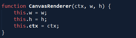 Аргументы w и h задают размеры рабочей области (т.е. холста), а ctx это контекст рисования, через который происходит доступ к холсту.