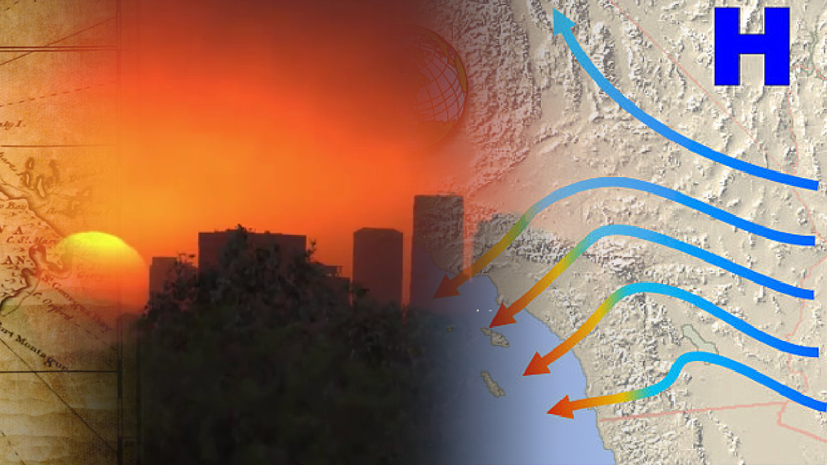 Иногда к побережью с Тихого океана подходит циклон - зона пониженного давления. Когда разница между давлением в Лас-Вегасе (за горами) и в Лос-Анджелесе (перед горами) достигает всего каких-то 9 миллибар, запускается механизм Санта-Аны.