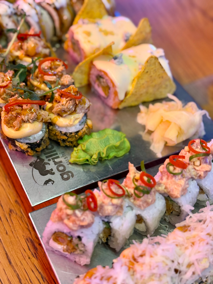Gorilla by Баста - модные суши, которые мы оч любим! 🍣Проект от команды ресторанов FRANK и "FRANK by БАСТА" с по-настоящему новаторской кухней, способной утолить истинный голод. У меня вся семья обожает роллы и суши, так что место для семейного обеда выбрали без споров ☺️ Кстати, сейчас у них спешл с уткой запустился с декабря - если вдруг лосось и угорь надоели 😅 Из хитов - горилла бургер, рамен и том ям. Старший у меня по рамену - на самом деле порция такая большая и сытная, что после тяжело найти место для роллов, но мы профи! Мелкий любитель хот-догов, тут они тоже необычные. Роллы всегда берём разные в стол, так как тут есть классные необычные сочетания и хочется всего по-немногу. Cheesy killer с начос и карамельная Филадельфия с реальной тягучей карамелью и взрывавшимся сахаром-посыпкой - топ необычных. 🥂🥃С напитками тоже всем на радость и разнообразие. Люблю здесь коктейли, они, при всей «неоновости» заведения, совсем не кислотно-химозные, а прям классные с чисты