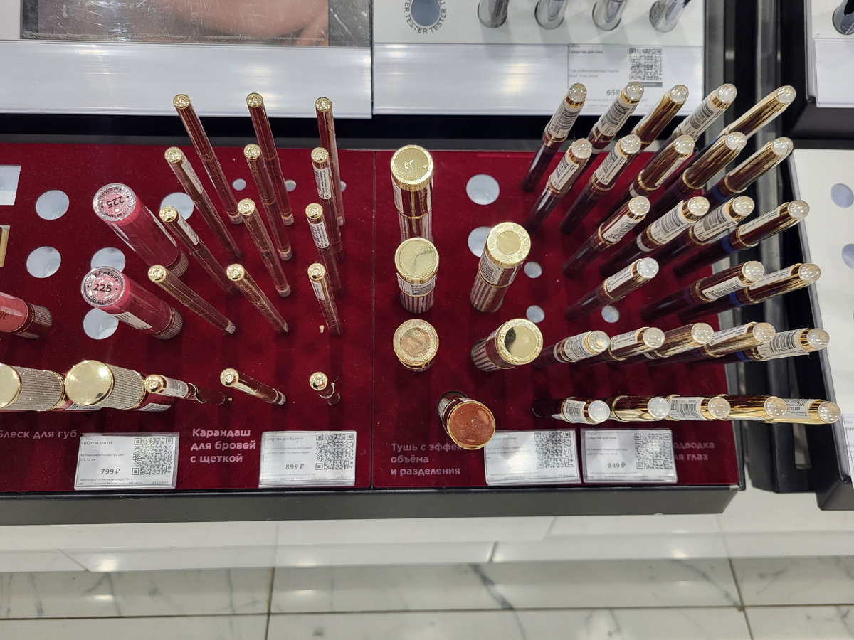 В общем, есть интересные продукты (лайнеры, помады, карандаши), но часть продуктов из-за оформления напоминает ассортимент Алиэкспресс. Еще совсем недавно такие флаконы в стразах мелькали в обзорах блогеров, показывающих бюджетные находки с диякоягодного. И там часто фигурировали подобные туши и блески, в усыпанных стразами упаковках. Ладно, это, конечно, дело вкуса. Я сама была готова купить один из блесков. И купила бы, будь там более подходящая текстура.