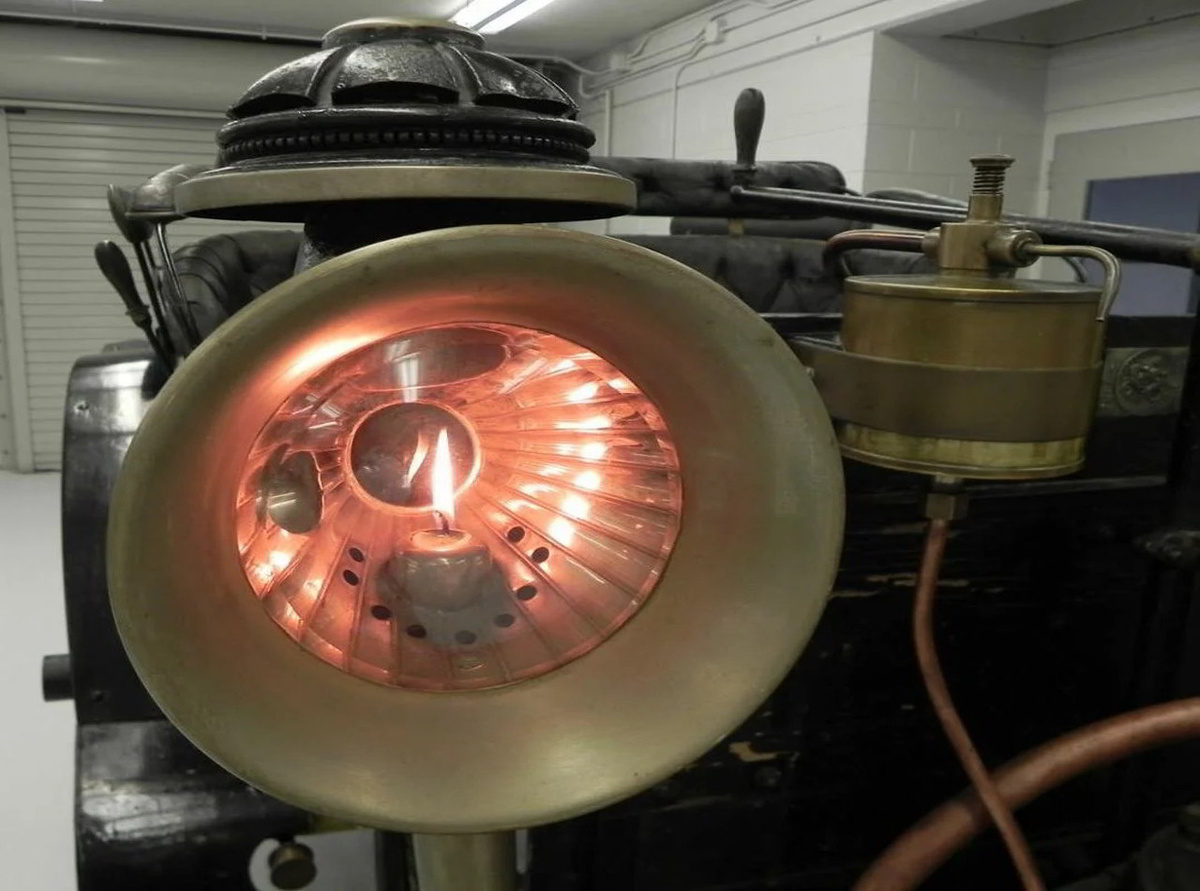 Ацетиленовые фары, вытеснившие «керосинки», изначально применялись на паровозах. Установить прожекторы на авто предложил авиаконструктор Луи Блерио. Так автомобили получили сносный свет. Но чтобы запустить такую конструкцию, первым водителям надо было повозиться: открыть кран подачи ацетилена, стеклянные колпаки самих фар и зажечь спичкой горелки.