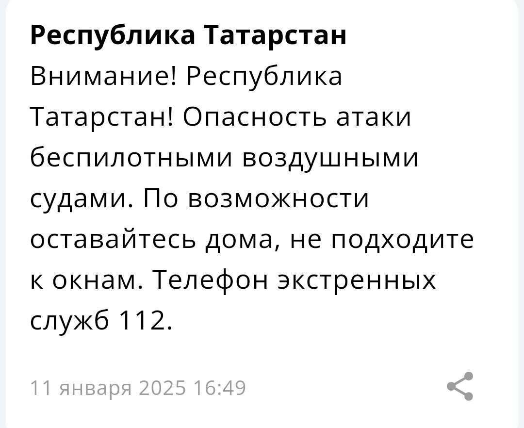 В Татарстане жителям поступило предупреждение об угрозе беспилотников