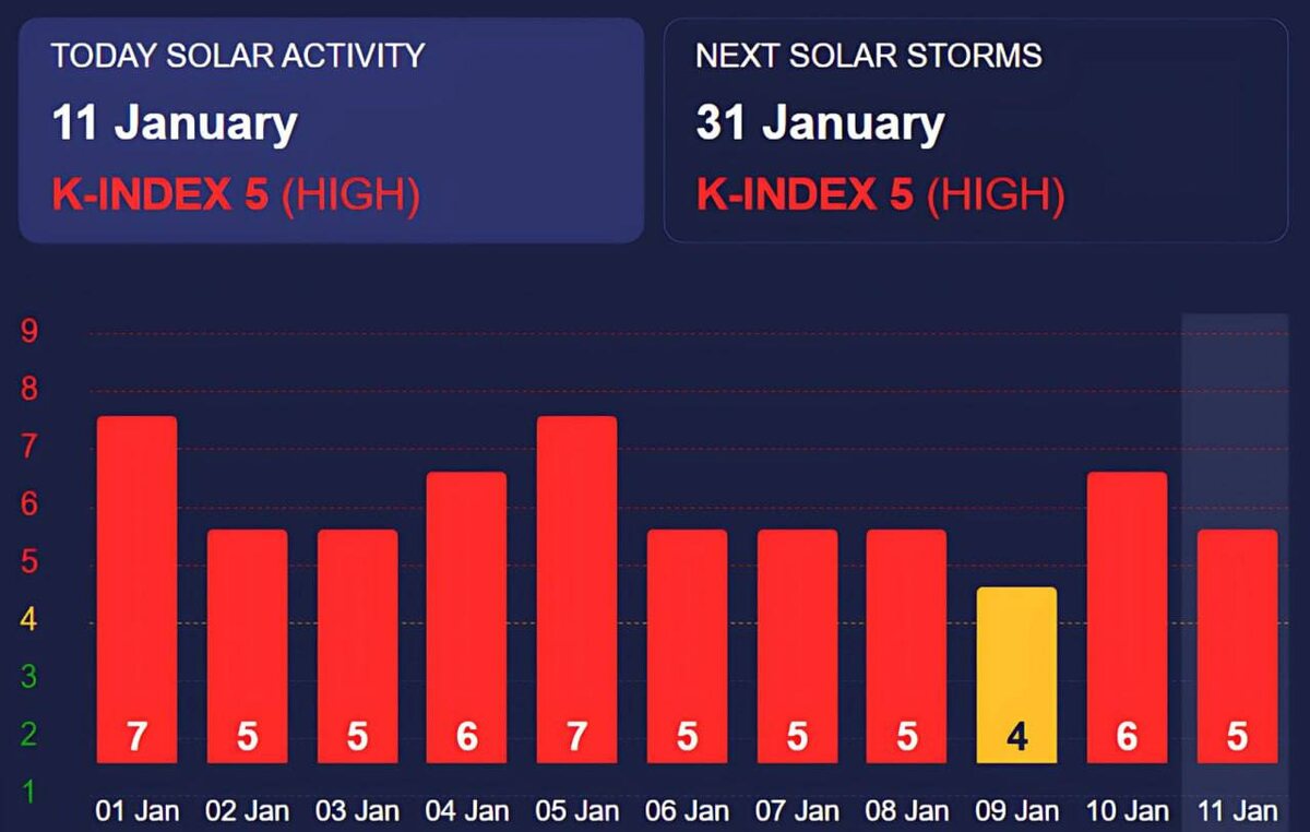 сегодня прогнозируется магнитная буря с K-индексом 5.