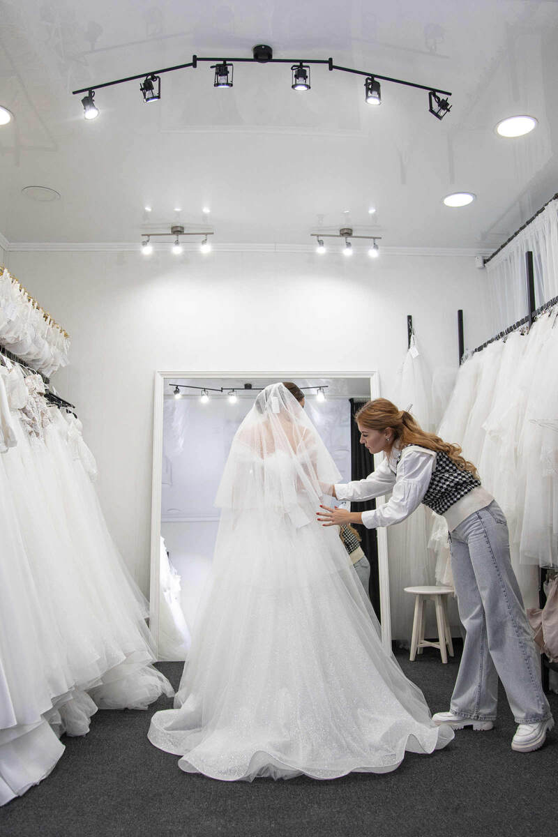 Топ-3 ошибки невест на примерке ❌Ошибка 1️. Черное или яркое нижнее белье. Свадебное платье, особенно из полупрозрачных тканей, очень тонко реагирует на цвет нижнего белья. Представьте, что сквозь нежную ткань вдруг проступают контуры яркого или черного белья. Это отвлекает и мешает представить, как платье будет выглядеть в реальности. Как правильно? Для примерки выбирайте белье телесного цвета, без лишнего декора и рельефных швов. Особенно это важно, если планируете платье с облегающим силуэтом или тонким кружевом. ❌Ошибка 2️. Яркий макияж. Невесты часто делают полный макияж, чтобы «почувствовать» образ, но это может стать проблемой. Почему? Во-первых, пудра, помада или тушь могут испачкать платье. А во-вторых, яркий макияж отвлекает от платья и может осложнить выбор. Как правильно? Для примерки лучше использовать лёгкий нюдовый макияж или вовсе обойтись без него. Так вы сможете сосредоточиться на платье и аксессуарах. ❌Ошибка 3️. Примерка корсетного платья с бюстгальтером. Корсетные