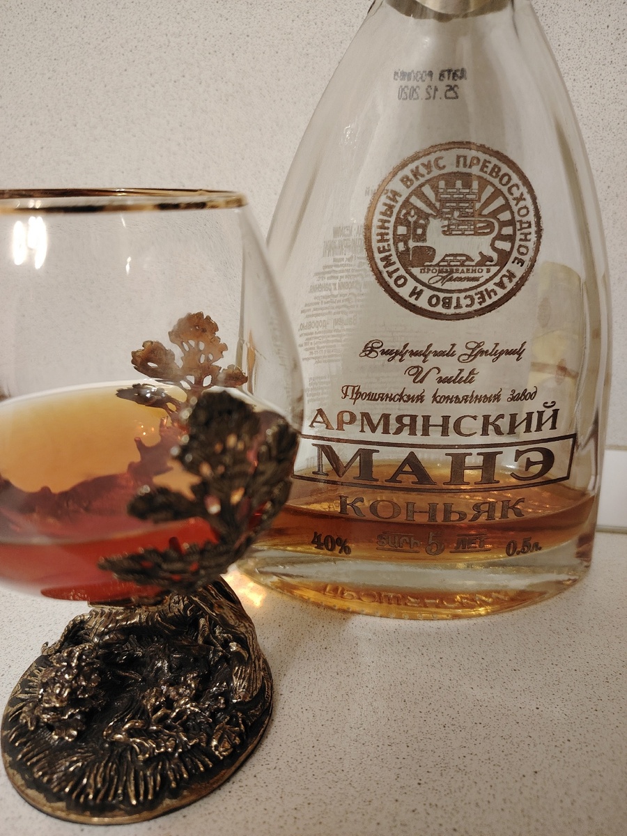 - Чрезмерное употребление алкоголя вредит вашему здоровью. Алкоголь противопоказан детям и подросткам до 18 лет, беременным и кормящим женщинам, лицам с заболеваниями центральной нервной системы, почек, печени и органов пищеварения. Ave, квириты! Разбираем армянский коньяк «МАНЭ, 5 лет. Изготовитель – известный ООО «Прошянский коньячный завод». Мы уже разбирали их коньяк «Поздравительный», что из себя представляет этот образец? Прикладываю страницу напитка с сайта производителя (https://proshyan.ru/catalog/cognac/konyak-mane-5-let/). Итак, что пишет завод. Выдержка -в дубовых бочках не менее 5 лет, после чего проводится трехмесячная довыдержка в бочках после крепленного вина. Вкус – в полнотелом вкусе ощущается шоколад, кофе и нюансы дуба. Аромат- интенсивный наполнен оттенками ванили, специй и шоколада. Состав: коньячные дистилляты, выдержанные не менее 5 лет, вода подготовленная, сахарный сироп, пищевая добавка: краситель – сахарный колер простой E150a. Сорт винограда Мсхали, место п