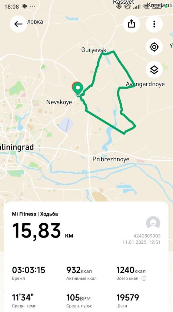 С востока вокруг Калининграда протекает река Гурьевка. Гу́рьевка (нем. Mühlenfließ — Мюленфлис — Мельничная река) — малая река в Калининградской области, правый приток Преголи. Длина реки 27 км. Река протекает через самый центр города спутника Калилининграда, рай.центра Гурьесвка. Сегодня у меня был довольно необычно для меня организованный поход. Как правило я выхожу из дома пораньше и гуляю совершенно спокойно пять-шесть часов. Реже больше. А сегодня с утра я еще не был уверен что вообще куда-то пойду. Но несколько случайных взглядов брошенных за окно убедили меня принять правильное решение. Ну нельзя сидеть дома когда за окном снежная вьюга. И это в Калининграде!!! План похода в голове уже был продуман. Просто ждал реализации. В этот раз я хотел пройти через Новое Васильково, через новый мост, а потом посёлками пройти до отеля Балтика. И уже известной дорогой через Большое Исаково вернуться домой. Неспешно собрался. Тут появилось дело. Нужно было завести детей на кружок в Гурьевск