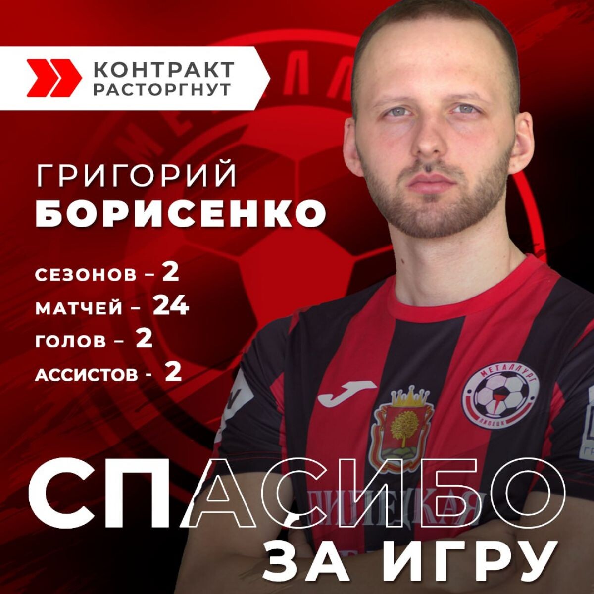 Липецкий футбольный клуб покинул 22-летний хавбек Григорий Борисенко. Расставание произошло по обоюдному согласию. Ряды футболистов ФК «Металлург» Борисенко пополнил зимой 2024 года. По информации пресс-службы футбольного клуб, ранее Григорий был воспитанником московского «Локомотива», играл за «Балтику» и «КАМАЗ». За липецких «сталеваров» полузащитник Борисенко сыграл не так много матчей. Помешали травмы: сначала правого плеча, а затем и левого. «Мы не забудем голы-красавцы осенью в домашних матчах с «Родиной-2» и «Муромом», но обе эти встречи были проиграны. Вторая со счётом 2:3 – отчасти и потому, что Борисенко в конце не реализовал пенальти», - припоминают теперь уже бывшему игроку в пресс-службе ФК «Металлург». Ранее стало известно об уходе из команды Руслана Бабаяна.