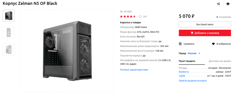 Корпус Zalman N5 OF изначально комплектуется тремя вентиляторами диаметром 120 миллиметров, что делает покупку дополнительных вентиляторов в большинстве случаев ненужной. Кроме того, корпус обладает хорошей вентиляцией и продуманной организацией внутреннего пространства: предусмотрено место для укладки кабелей, а также имеется базовый комплект пылевых фильтров. К сожалению, цена на модель возросла — совсем недавно её можно было купить за 4 тысячи рублей или даже дешевле.