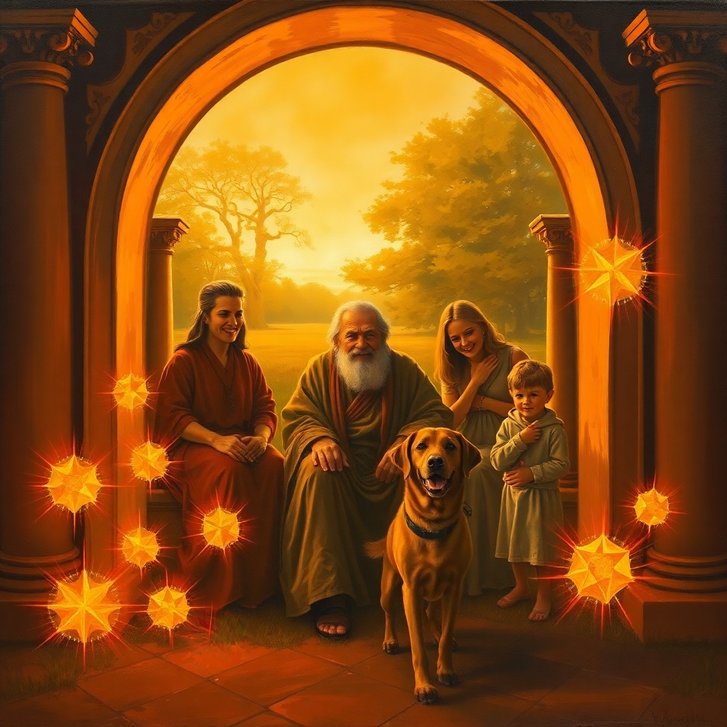 Десятка Пентаклей - карта, олицетворяющая богатство, стабильность, традиции, семью, прочные устои. На этой карте изображен пожилой человек в своем роскошном особняке, окруженный семьей. Вокруг него собрались внуки, дети и домашние животные. Все хорошо проводят время, играя и общаясь. Все, за что боролся этот человек на протяжении всей своей жизни, воплотилось в его наследии.