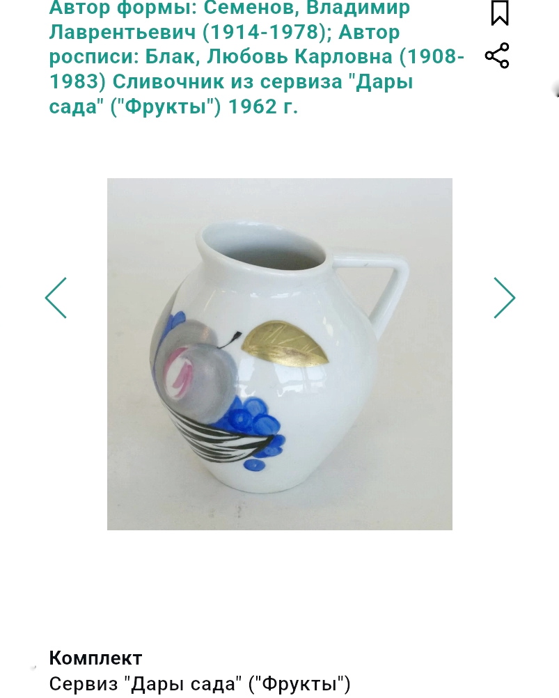 Год назад мы смотрели на красоту Любови Блак. Когда впервые я увидела эту роспись, то просто потеряла сон. А молочник стал моей фруктовой мечтой! Но первым к нам попал чайник. С приключениями и неоригинальной крышечкой. Этот чайник, кстати, в конце лета переехал в Бельгию к новой хозяйке. Потому что супруг нашёл другой с родной крышкой. А сегодня случилось чудо 😭 Вчера супруг охотился на Авито и случайно увидел ЕГО среди другого фарфора! Где-то сбоку, по форме ручки. Объявление было ещё от середины декабря. И по опыту мы знаем, что подобные вещи шустрые продавцы подмечают и незамедлительно выкупают. Но он всё-таки написал продавцу... Я даже не стала жалеть деньги за экспресс-доставку из Московской области 😅 в этот-то январский дождь и повышенными тарифами. Очень боялась упустить мою мечту! И вот он у меня в руках ❤️ Супруг процитировал бородатый анегдот про рыбака, которому связали руки: «Ну рыба не рыба. Но глаз ВОООТ такой!» 😂 Осталось три САМЫХ желаемых молочника. Но их пока не в