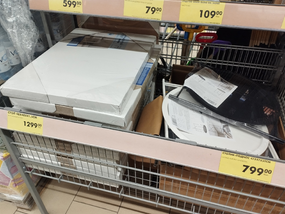 Хочу начать с этих небольших круглых столиков в белом цвете, поскольку они очень похожи на те, что продавались раньше в "Ikea". Дизайн такой, словно это мебель из того магазина, поэтому, если кто-то соскучился по данному стилю, самое время присмотреться. А цена-то у столика лишь 799 рублей, что делает покупкой весьма бюджетной. Использовать его можно для мелочей, он хорошо подходит к любому интерьеру и на нем выигрышно будут смотреться как свечи/статуэтки, так и, например, небольшие горшки с цветами.