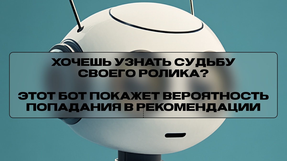 Как часто ты задаёшься вопросом: "Зайдет ли это видео?" Монтаж, звук, идея — всё кажется идеальным, но результат остаётся загадкой до момента публикации. Что если я скажу, что теперь можно узнать судьбу ролика до того, как он попадёт в ленту? Да, это реально! Я нашёл невероятно полезный инструмент — бот, который анализирует ролики и показывает вероятность их попадания в рекомендации. В процентах! Эта технология основана на алгоритмах машинного обучения. Бот анализирует ключевые параметры вашего видео и сравнивает их с успешными примерами, которые уже набрали миллионы просмотров. Вот, что он учитывает: