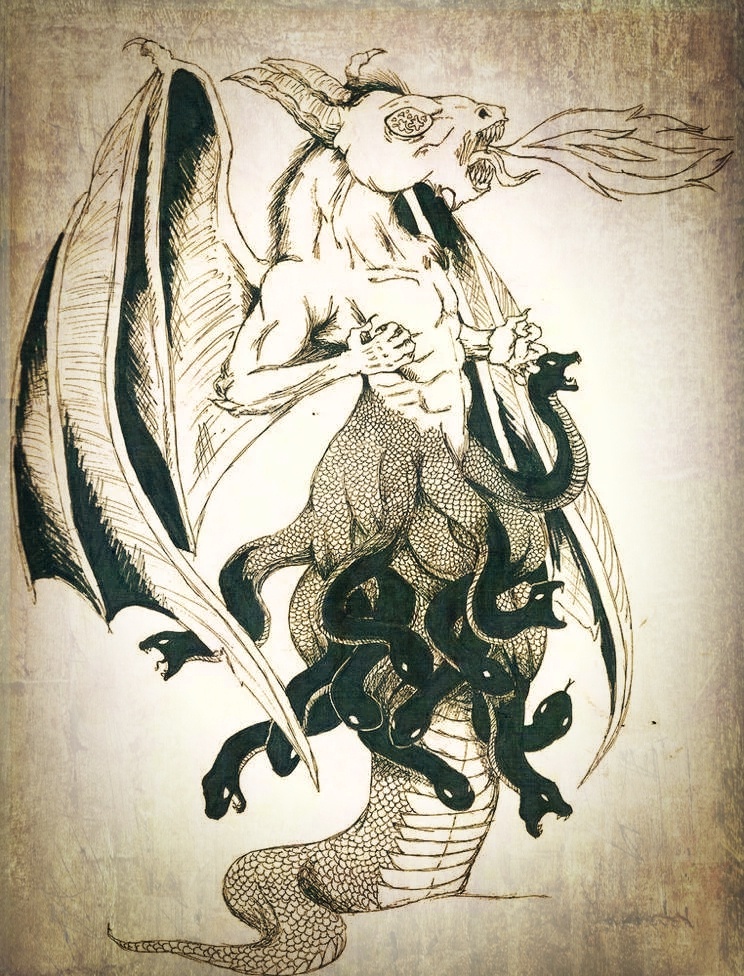 Когда смотришь на изображения разных существ, то испытываешь всевозможные чувства. Иногда они выглядят забавно, а иногда пугающе. Но стоит присмотреться к изображению какого-нибудь гигантского существа, сразу появляется какое-то необычное чувство... В статье я расскажу о нескольких персонажах, отличающихся просто неимоверными размерами. Приятного чтения! Огромный дракон с человеческим торсом. Он передвигается на сотнях змей, заменяющих ему ноги. Ростом Тифон настолько велик, что касается звёзд каждой из своих голов, который, к слову, у него сто. Головы Тифона издают разнообразные, пугающие звуки. По одной из версий, Тифон сын Геи и Тартара, по другой сын Геры. Есть и другие версии, но в любом случае Тифон являлся злейшим врагом Зевса. Верховному богу с большим трудом удалось одолеть гиганта. Он водрузил на Тифона гору и приказал охранять его Гефесту. Тифон с помощью Ехидны породил на свет огромное количество ужасных существ, среди которых были знаменитые Цербер, Лернейская гидра, Немей