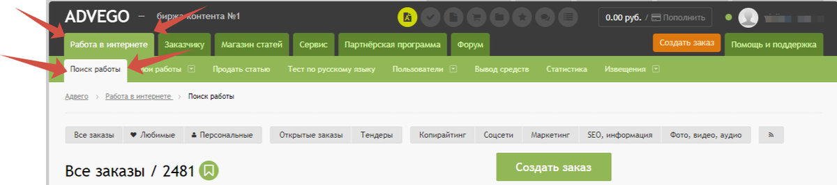 Наверное каждый пользователь интернет хотя бы раз задавался вопросом: "Можно ли заработать в интернете реальные деньги?" Если задать данный вопрос в поисковую систему, то Вы получите кучу статей про то, как с нуля можно стать миллионером. Правда ли это? Едва ли. Но всё-таки заработать можно. Для новичка проще всего будет начать заработок с сайтов, на которых Вы будете получать оплату за выполнение несложных заданий. В этой статье я хочу порекомендовать Вам сайт advego.com. На сайте очень простая регистрация, достаточно просто ввести свой email и логин, также можно зарегистрироваться через вконтакте, google+, mail и одноклассники. Для начала работы Вам необходимо войти в свой аккаунт и перейти во вкладку "Работа в интернете", а затем выбрать "Поиск работы". На сайте есть много различных заданий, оставление отзыва в яндекс/гугл картах, установка приложений на телефон, подписка на телеграмм каналы и т.д. Оплата за выполнение такого заданий может быть от 20 до 200 рублей, в зависим