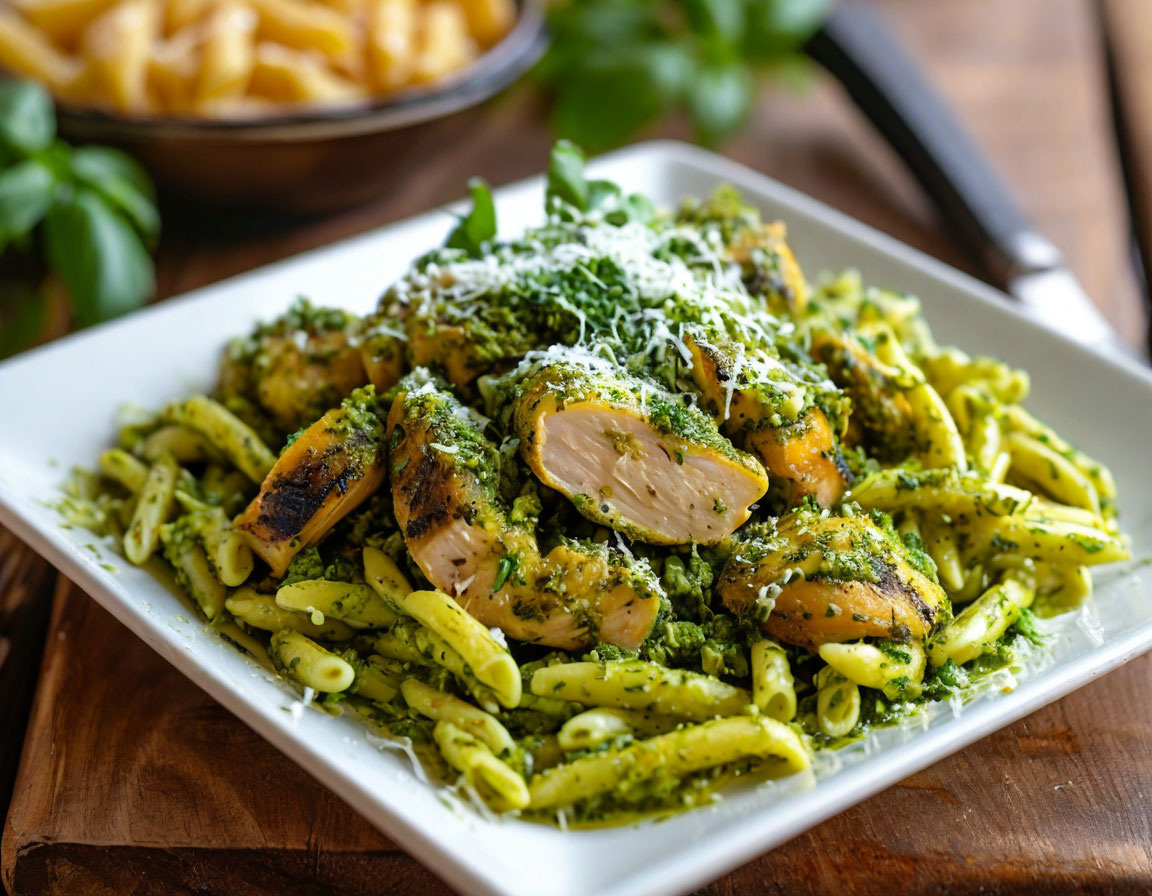 Нежная паста с соусом песто и курицей: идеальный обед
