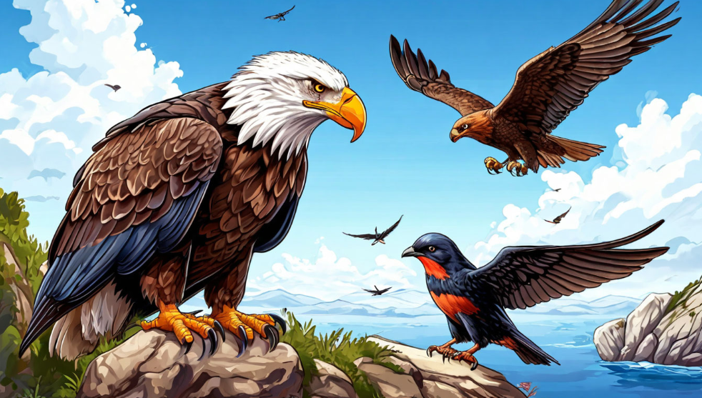 Солнце только-только проснулось, лениво потягиваясь золотыми лучами, а в долине уже вовсю кипела жизнь. На самом краю скалы, с которой открывался вид на все окрестности, сидел орёл по имени Аристарх. Он был важным, могучим, с взглядом, способным пронзить даже самую густую тучу. Рядом с ним на тоненькой веточке берёзы весело чирикала ласточка по имени Чирика. Чирика была маленькой, юркой и очень - очень быстрой. – Аристарх, – прощебетала Чирика, покачивая хвостиком, – давай посоревнуемся! Аристарх недоверчиво нахмурил брови. – Соревноваться? С тобой, малышка? В чём же? – Кто быстрее добудет еду! – гордо объявила Чирика. – Я, конечно, знаю, что ты большой и сильный, но я такая… ловкая! Аристарх громко захохотал. – Ловкая?! Ха! Ну ладно, маленькая птичка. Посмотрим, на что ты способна! Поймать мошку и гордо нести ее домой, думая, что совершила подвиг? Тут из-за большого дуба вылез важный, напыщенный Червяк по имени Глеб. – Ого, да тут намечаются соревнования! – пробормотал он, приподняв г