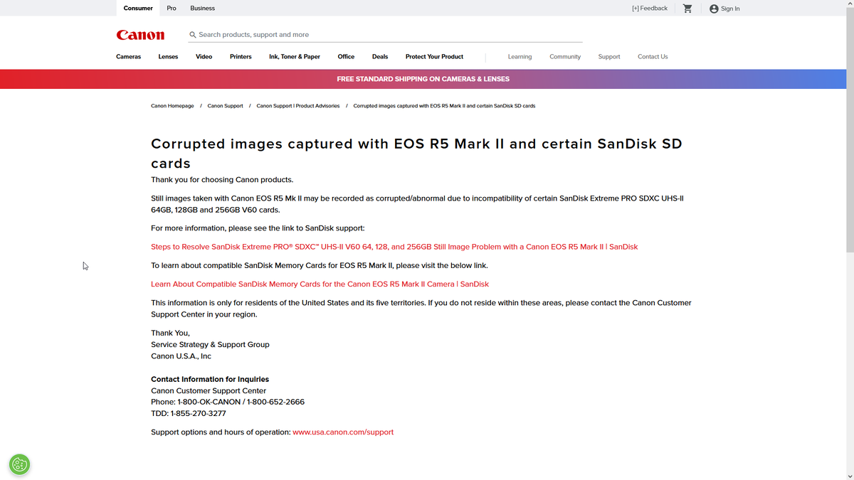 [429] Canon предупредила о несовместимости фотоаппаратов с картами памяти SanDisk.