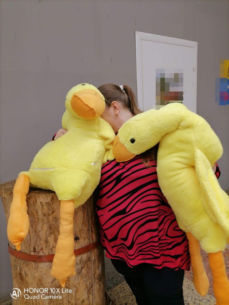 Всем, привет!!! Мои дочкам уже 17 и 15 лет. Но не смотря на то, что они достаточно взрослые я все равно им покупаю мягкие игрушки. Старшая моя дочка учится в медицинском колледже в Москве. Живет в общежитии. Там не только она одна такая. Женское общежитие и у всех девчонок есть мягкие игрушки. У кого-то их побольше. А у кого только одна игрушка. Но не суть. Я никогда не делю детей и покупаю им что-то одинаковое. Как раз старшей дочке исполнилось 17 лет и мы ей купили ноутбук со всей приблудой, ну и конечно же гуся. Сейчас это так модно. Мне понравились жёлтенькие. Заказывала их на Яндекс Маркете. Купила сразу два. Одной и второй дочкам. Вот они были рады... Мне кажется, что в любом возрасте девушке, женщине будет приятно получать мягкие игрушки. И девочки мои были безумно счастливы. Потом летом перед первым сентябрем мы с мужем решили купить им еще по мягкой игрушке. Я сама очень люблю яркие цвета. Вот решила и дрчкам яркие игрушки заказать. Купила их на Озоне. Несмотря на то, что дев