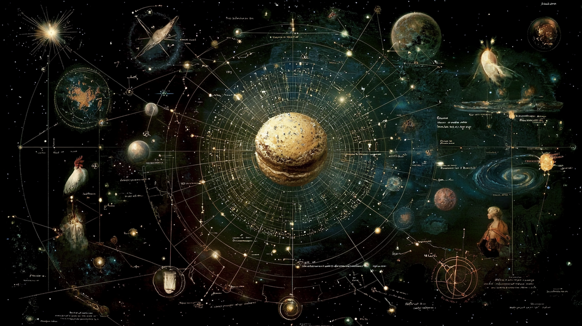 Вы когда-нибудь задумывались, может ли простой десерт изменить ход вселенной? Приготовьтесь к кулинарному путешествию, которое перевернет ваше представление о реальности быстрее, чем вы успеете сказать: "Большой взрыв"! "Примечание от Межгалактического кулинарного Совета" (МЕКУЛИС): Данный десерт классифицирован как "преобразующий ткань мироздания" Употребление строго под наблюдением квантовых кондитеров! Экпиротическая (не путать с эротической (прим. авт) модель Вселенной, предложенная группой шебутных, но, гениальных физиков-теоретиков, предполагает, что наша Вселенная периодически сжимается до сингулярности, а затем снова расширяется. Представьте это как космическое йо-йо, если хотите. Или как идеально взбитые сливки, которые то растекаются, то собираются обратно в пышную массу. Ингредиенты: Процесс приготовления требует докторской степени по квантовой механике и сертификата Межпространственного Кондитера (МЕКОН). Каждый взмах венчиком может создать временную петлю, а неправильная т