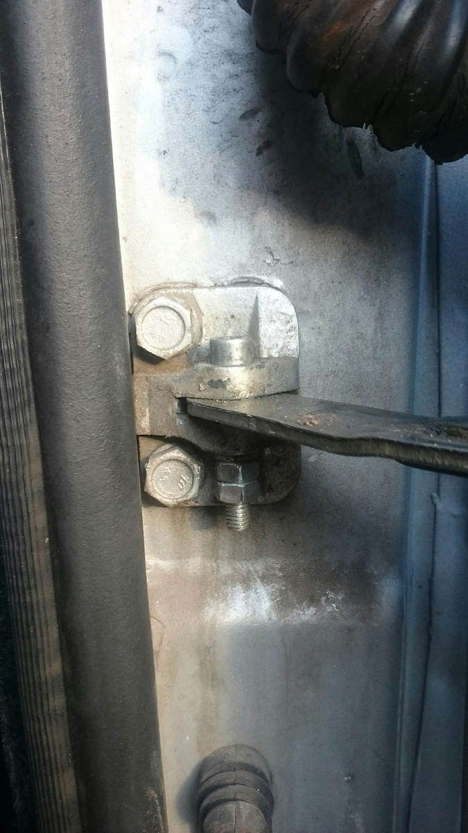 Копаясь в багажном отсеке, я заметил, что дверь как-то сама по себе легко закрывается. Произвел осмотр. Отсутствует болт ограничителя и фиксатора двери задка. Возможно сильным порывом ветра открытой дверью задка срезало, либо от вибрации гайка раскрутилась и он предательски дезертировал. Болт там применил простой на "6", поэтому проблем с поиском оного не было трудностей.