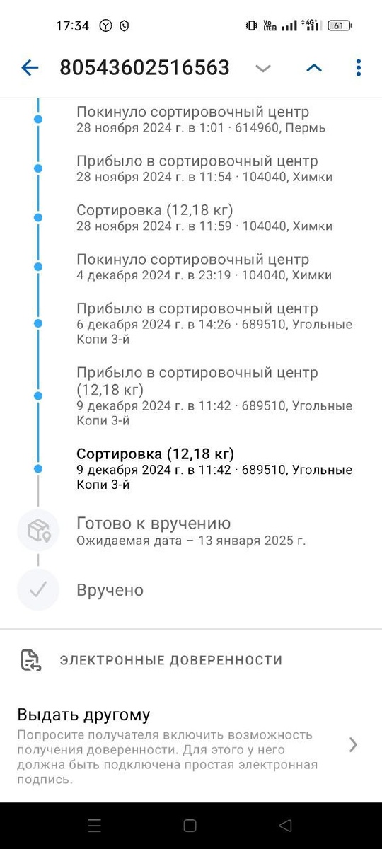 Три посылки на сортировке с 9 декабря в Угольных Копях