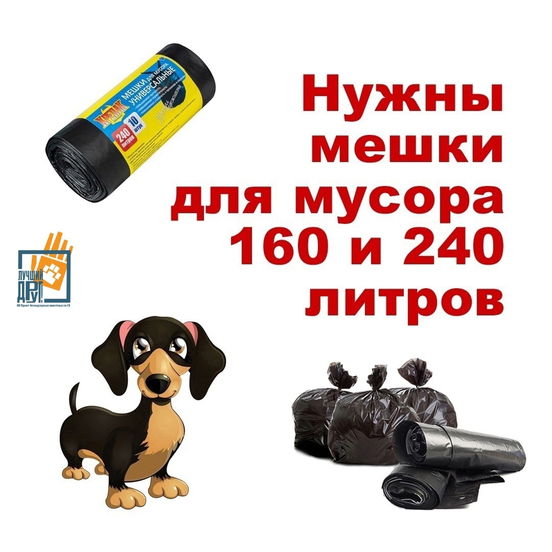 Так же всегда нужны трикотажные рабочие перчатки и резиновые хозяйственные перчатки. Помочь можно следующими способами: 1) Купить пакеты для мусора и привезти в приют с 10 часов до 17 часов, или оставить в пунктах приема помощи приюту 2) Заказать на любом