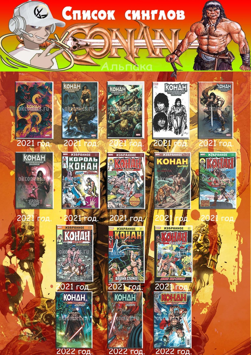 КОНАН. КОРОЛЕВСКИЙ ВЫПУСК (ЭКСКЛЮЗИВНАЯ ОБЛОЖКА КНИЖКИ С КАРТИНКАМИ) КОНАН. КОРОЛЕВСКИЙ ВЫПУСК (ОБЛОЖКА ХЕСУС САЙЗ) Конан-варвар. Королевский выпуск (Альтернативная обложка Кевин Истмен) Конан-варвар. Королевский выпуск (Альтернативная обложка Джон Бушема) Конан. Королевский выпуск | Коллектив авторов Король Конан. Гиперборейская колдунья Комикс Конан-варвар. Королева Чёрного побережья Комикс Конан-варвар. Долина червя Комикс Конан-варвар. Проклятье Золотого черепа Комикс Конан-варвар. Воскрешение Конан-варвар. Башня Слона Конан-варвар. Боги Бал-Сагота Комикс Конан-варвар. Тайна Гибельной реки Конан 2099 (эксклюзивная обложка КСК) КОНАН 2099 (ОБЛОЖКА ДЛЯ МАГАЗИНОВ КОМИКСОВ) Конан-варвар. Путеводитель по миру Хайборийской Эры Конан-варвар. 2099 Конан-варвар #23. Первое появление Рыжей Сони Конан-варвар #1. Первое появление Конана