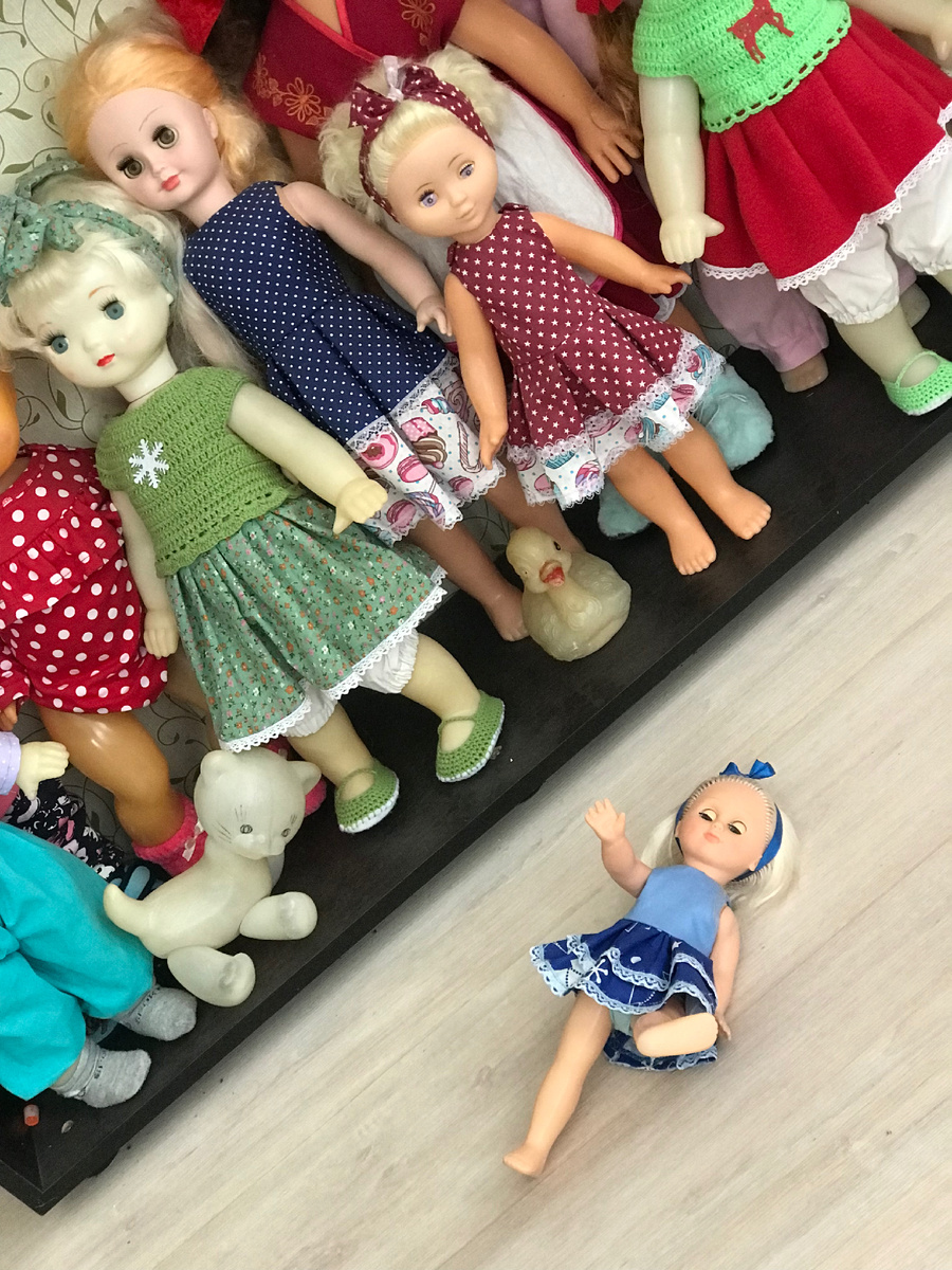 Здравствуйте , дорогие друзья❤️ Часто на форумах кукломам можно встретить обсуждение темы о том, что куклы падают, даже самые устойчивые и надежно закреплённые. Честно, я мало интересуюсь мистикой, да и не особо верю, но мои куклы тоже иногда падают, порой мне это кажется странным. В беседах коллекционеров встретила мнения, что падают чаще новые куклы, не могут освоиться или старые - требуют внимания, нового платья или причёски. Или не подходит место, окружение, освещение и т д., проблему решают перестановкой и новой рассадкой . Даже встречала историю о том, что с куклой пришлось расстаться, потому, что она своими перемещениями начала пугать хозяев. Я больше придерживаюсь мнения, что падения происходят от самых простых вещей - от постоянного перемещения в доме людей , хлопнули дверью , задели шкаф, рядом пробежал кот и так далее . А у вас были необъяснимые случаи, связанные с куклами?