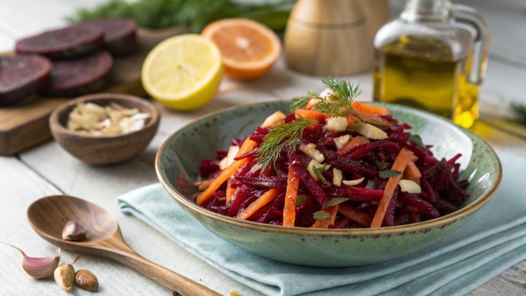 Салат из свеклы и моркови с чесноком