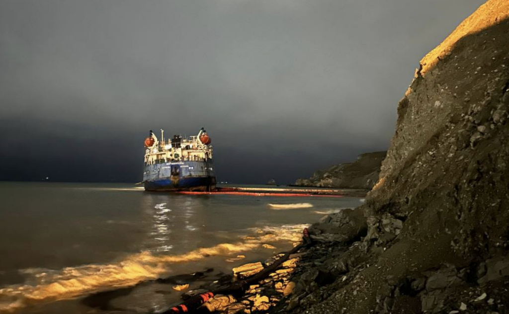 В Краснодарском крае с места разлива мазута из кормовой части танкера «Волгонефть-239»