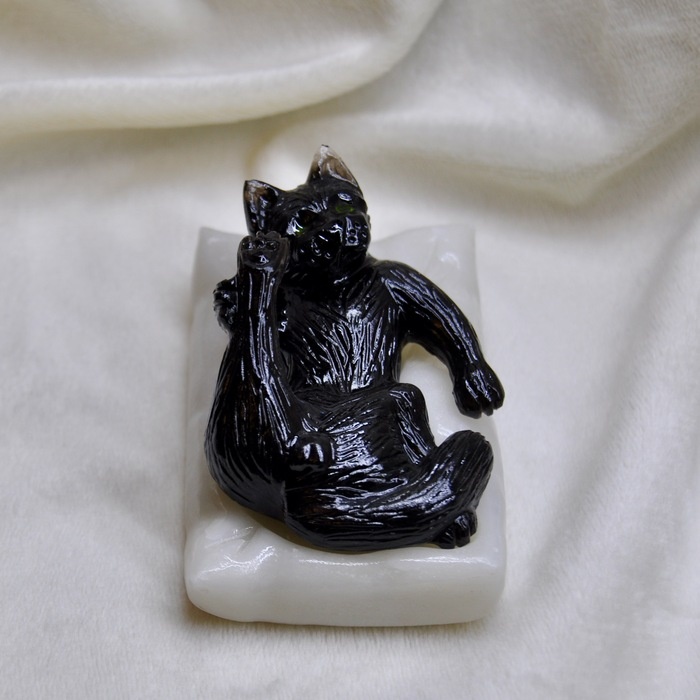 Тут я решила, что негоже такому представительному коту лежать на голом полу и быстренько вырезала для него подушечку из мрамора.